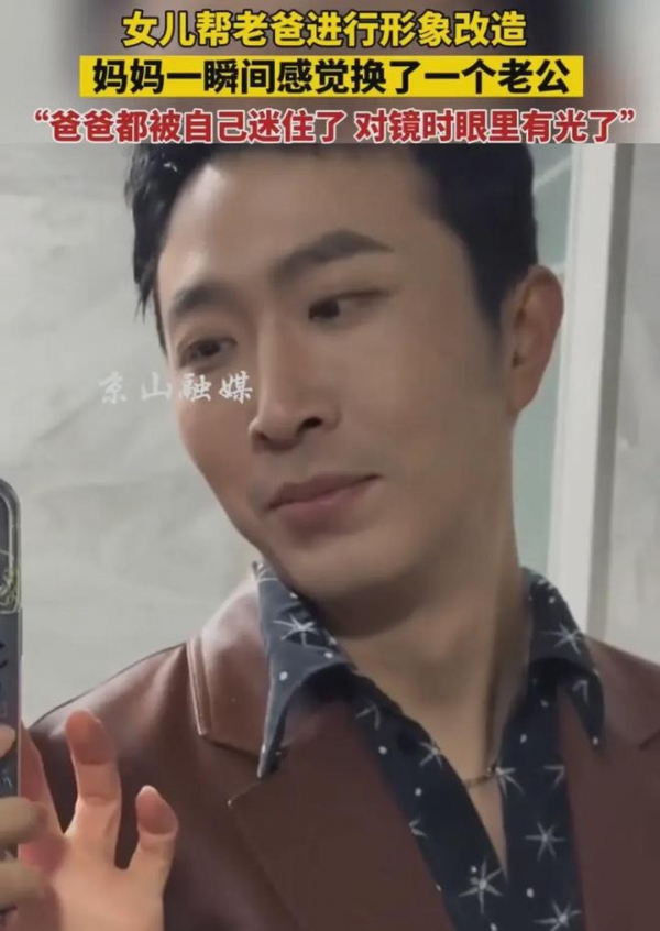 没想到,女儿的化妆技术犹如神笔马良一般。让普通的父亲直接蜕变成了一个明星一样的人。