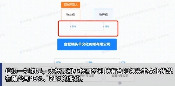 值得一提的是,大杨哥和小杨哥分别持有合肥领头羊文化传媒有限公司49%、51%的股份。