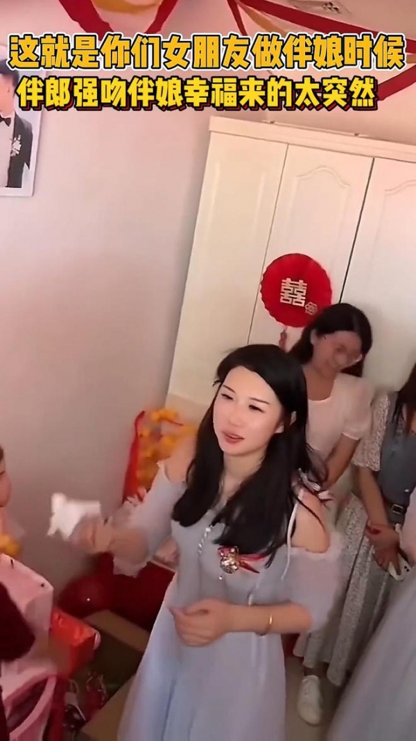 也有位网友评论说,伴娘眼神迷离入戏,伴郎占了便宜抽身而去。