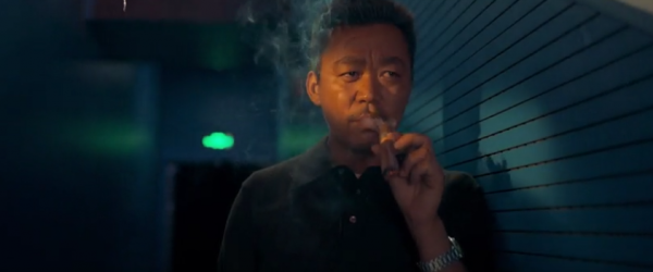 片中,向腾辉是个老烟枪,烟不离手,刚开始抽过滤嘴,后面直接嗑雪茄。