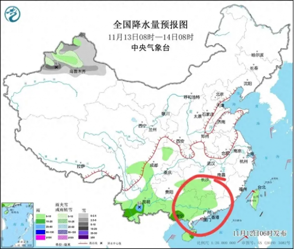 另外,需要注意的是,今明两天,广东省沿海海面、北部湾海面、南海中北部海面将迎来东北风,风力逐渐增大,最高可达7~8级,阵风更有可能达到9级。海面大风的出现可能对航行和渔业活动产生一定的影响,务必注意安全。