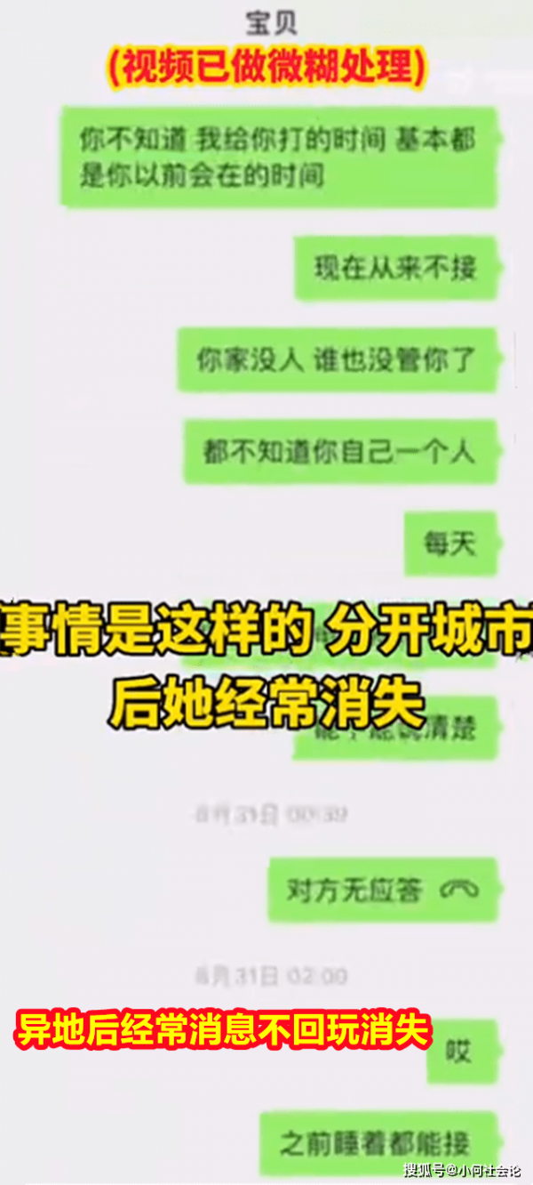 在异地期间,女友仿佛是变了一个人,态度冷淡不说还经常玩失联,这让男子意识到女友很有可能是在外面有人了。