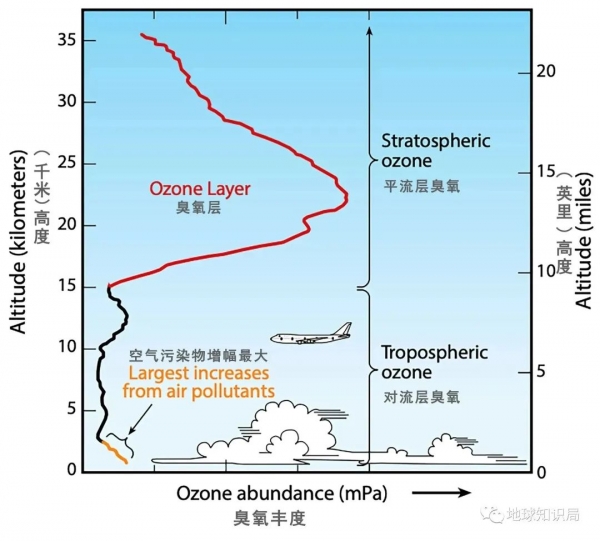 大气中90%的臭氧都集中在10-50公里高的平流层,远高于我们熟知的西风带高度,这里空气稀薄,臭氧的总量只相当于常温常压下5毫米厚的一层气体。