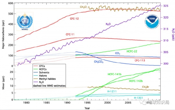 在20世纪的后二十年间大气中氯氟烃的浓度不降反升