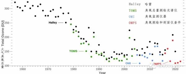 哈雷考察站数据显示从20世纪80年代开始大气臭氧含量急剧下降