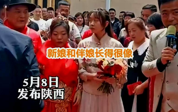 为了让新娘子感受到陪伴,女方安排了伴娘全程陪伴在她的身旁。新娘与伴娘长相十分相像,令人误以为她们是亲姐妹。