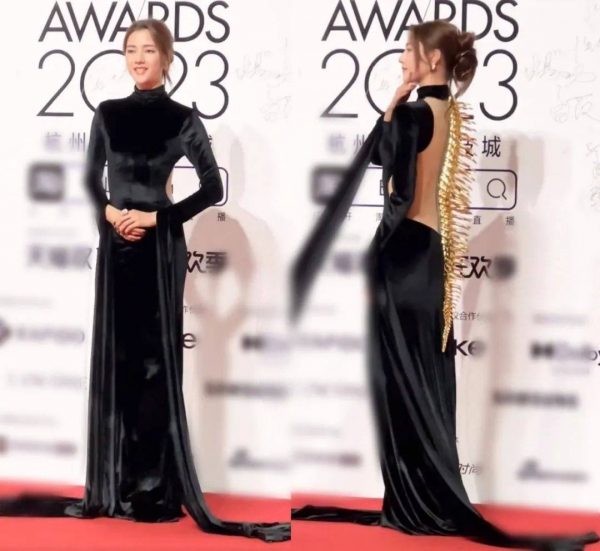 红毯上还有另一位"女战士"宋妍霏,穿了红棕色垫肩蛇皮套装,要是她跟刘雨昕站在一起,一个像要去宇宙战斗,另一个则像是留守地球大本营指导战斗的大boss。