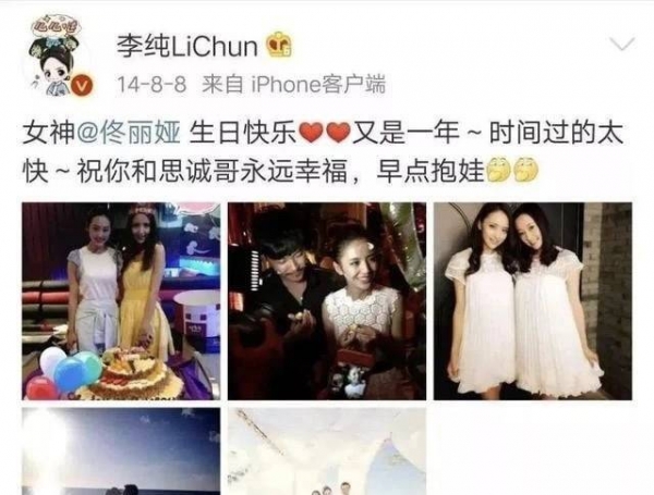直到后来李纯小有名气,网友重新把这个事情翻出来一扒,才发现李纯竟然还是佟丽娅的好闺蜜,不仅有去大溪地参加两人婚礼,还经常在社交平台上和夫妻俩互动送祝福,这妥妥的八点档"闺蜜插足抢老公"剧情啊。