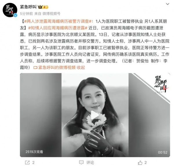近期,周海媚抢救病历遭泄露的事件引起了广泛关注。据报道,事件涉及两名被警方调查的人员,其中一人是医院职工,已被暂停执业。这一事件不仅涉及个人隐私保护问题,还涉及到法律责任问题。