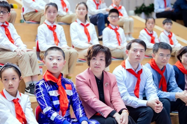 在以"金陵少年 逐梦星辰大海"为主题的队课上,赤壁路小学辅导员杨爱红老师带领队员们温习了今年航天日的主题--极目楚天,共襄星汉。鼓励大家了解航天知识,积极开展研学。7位少先队员带来了题为《"天宫"之梦》的情景表演,孩子们分别饰演天宫的核心舱--天和,航天员的实验室--问天、梦天等,以儿童视角阐述中国空间站"天宫"的构成,并介绍太阳能电池翼的研发、应用的价值。现场,南京市副市长孙百军勉励少先队员们:"要向费俊龙特级航天员学习不畏艰险、勇于探索的意志品质和一片赤诚、立志报国的爱国情怀。"