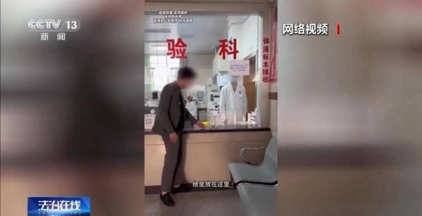 视频中,袁某把饮料假装成尿液,当着检验科医生的面喝下,不知情的医生一脸震惊。视频后半段,医生对这名男子进行了劝阻,但对方却不以为然,继续自己的疯狂行为。