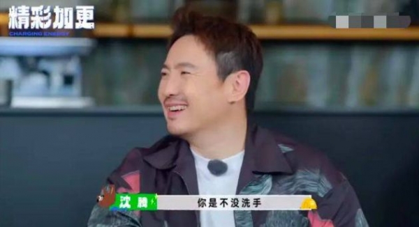 没想到一旁的沈腾笑着打趣"你是不没洗手",这时在场的男星都发出了秒懂的哄笑声,只剩下金晨和周也两个女明星有点尴尬。