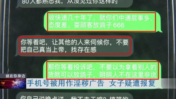 女子在与某快递员发生不愉快时,快递员有一条回复"让其他人来伺候你",字里行间都透出了威胁,而,就在当晚女子开始不停的收到各种注册验证码、垃圾诈骗短信,直到后来接到陌生隐晦电话。