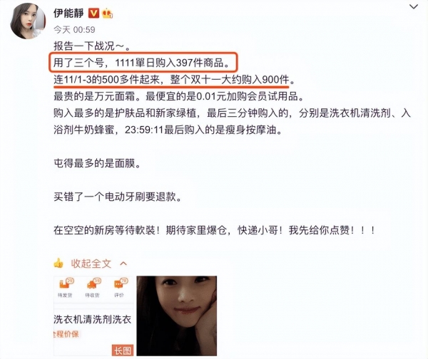 因为疫情,伊能静将家搬到了上海,租了一个超大且豪华的别墅,虽然不是自己买的房子,但是伊能静也将其当作是自己的家,双十一购入900多件快递。