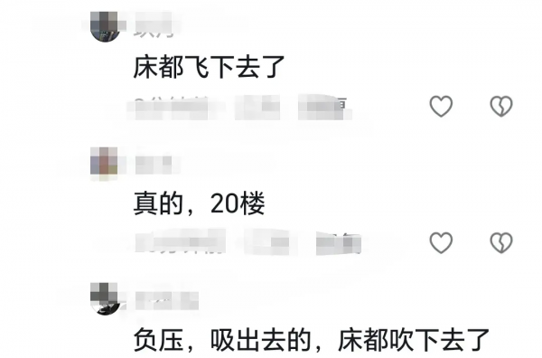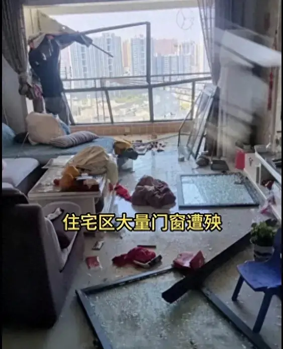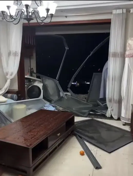 许先生表示,除了母亲和儿子房间的窗户被吹掉,他们家客厅的窗户也被吹掉。也就是他家安装的落地窗,被大风整整齐齐地吹落。狂风形成的巨大冲击力,将落地窗和卧室门吹掉,迅速形成一股强大的贯通气流,直接将床垫和人卷走了。