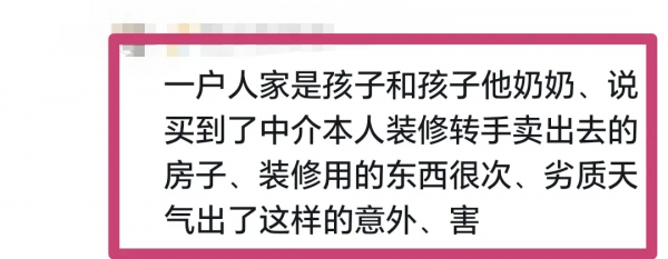 如此看,落地窗的质量问题是主要元凶。尽管天气非常恶劣,但是这么多小区和住房都没大事,他家的落地窗却被整体吹落,可见这个工程质量堪忧。知情人爆料,许先生家疑似买到了中介本人装修转手卖出去的房子,装修用的材料很次。无良中介节约成本、以次充好,消费者贪图便宜,酿成悲剧。