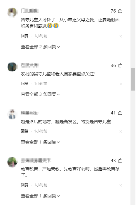 还有不少网友表示:留守儿童太难了,不仅缺少父母的爱,还有很多的危险