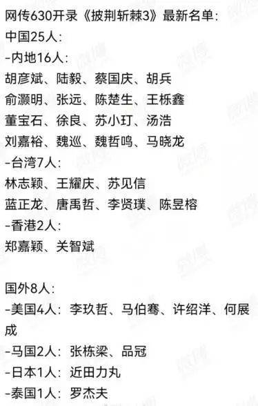 早前网上曾传出过这一季的参赛人员名单,总共邀请了来自中国、美国、日本、泰国、马来西亚等多个国家的,内地16人、台湾7人,香港2人、国外8人,总共33位"哥哥"。