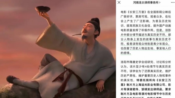 洛阳市隋唐史学会表示,律师提示,我国《电影剧本(梗概)备案、电影片管理规定》第十四条规定:"电影片有下列情形,应删剪修改:(一)曲解中华文明和中国历史,严重违背历史史实……"。因此,上海追光影业有限公司制作的影片《长安三万里》违反了前述规定,应当纠正。虽不能苛求制片方在此时对影片进行删改,但至少应发表声明,承认影片错误或失误,还原历史真相,向全国观众致歉,以平息各地网友骂战。