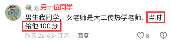 另一位同学也发声了,他说女老师是大二热传学老师,当时给他100分,这位同学也是南京航空航天大学的学生。