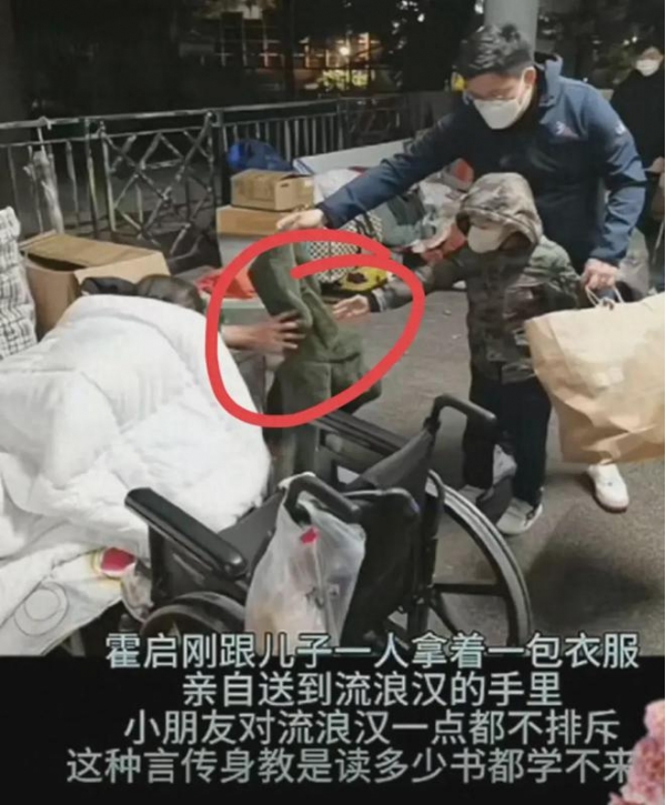 11月22日,有网友晒出一段视频,没想到竟然是穿着普通的霍启刚带着儿子现身街头,已经很晚了。父子俩从车上拿出8大包穿旧的衣物给街边的流浪汉,霍启刚儿子的一个举动,出乎了所有人的预料。