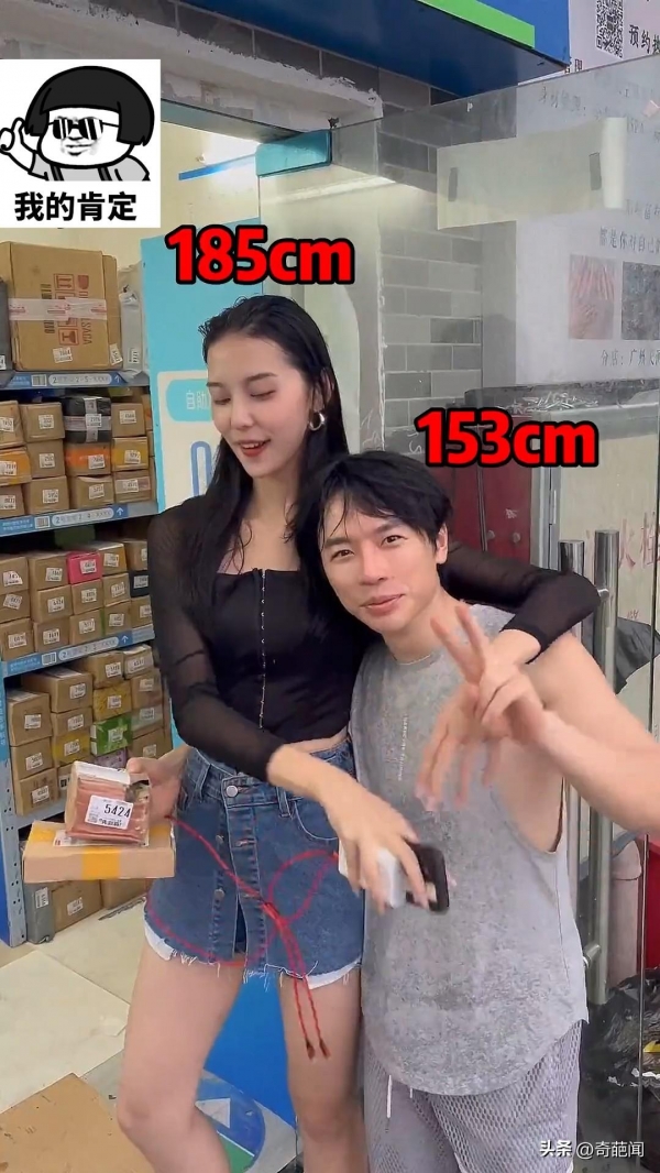 视频画面中小伙身高1米53长相普普通通,要说这样的条件在男性群体中算不上有优势,然而令大家没想的是,他却拥有一位身高1米85的漂亮女朋友,只见当两人站在一起时,男子足足矮了一个头,女友不仅可以轻松的搂着其脖子,还可以手搭在其肩膀上,