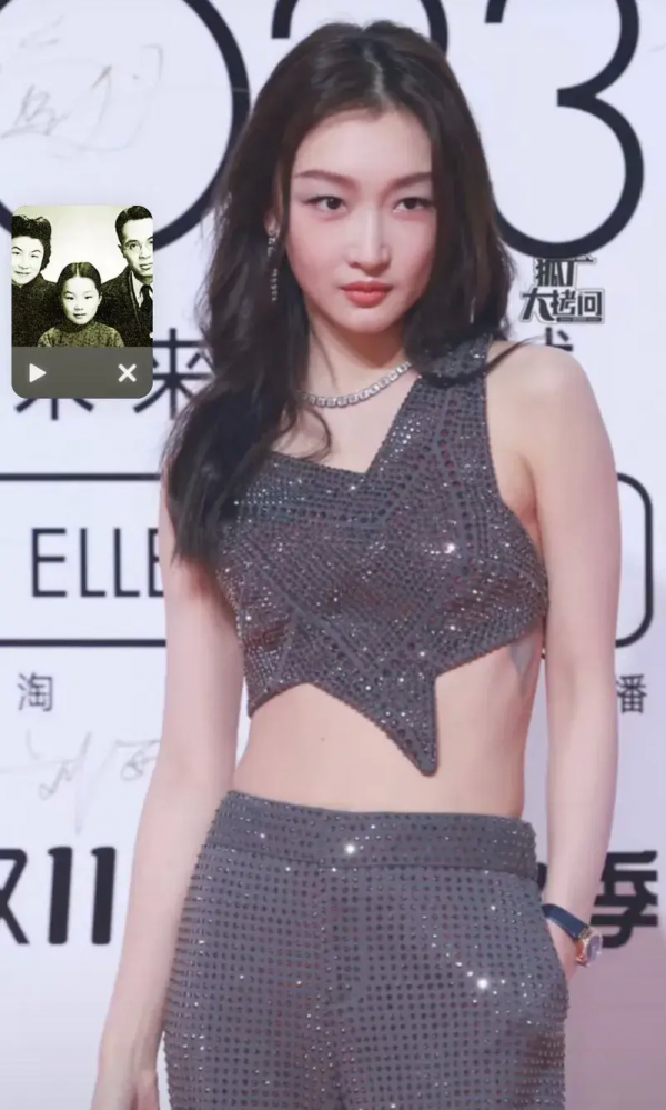 周冬雨的灰色亮钻套装剪裁得体,尽显她的曼妙身材。这套装的设计细节丰富,闪亮的钻石点缀在套装上,不仅增添了一份高贵气质,更让这套装在灯光下熠熠生辉。披肩长发自然垂落,为她的整体造型增添了一丝随性的优雅,让人感受到她独特的魅力。