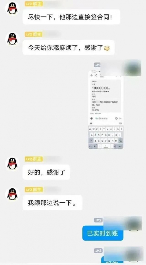 张先生不疑有他,到附近银行将手头上现有的10万元转到了相应账户里,并回复说已实时到账。当张先生从银行出来收到对方回复的时候,突然反应过来事情不太对劲,通过电话核实,张先生发现自己果然被骗了!