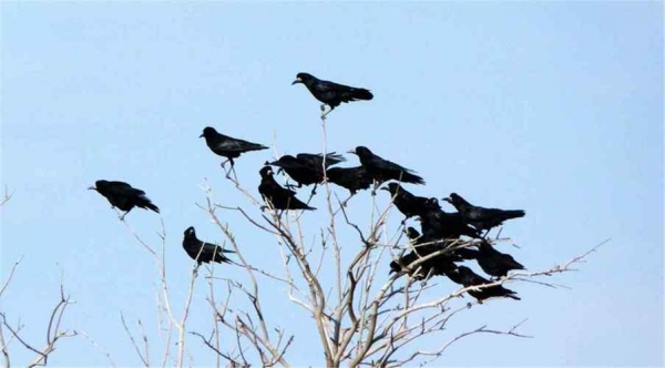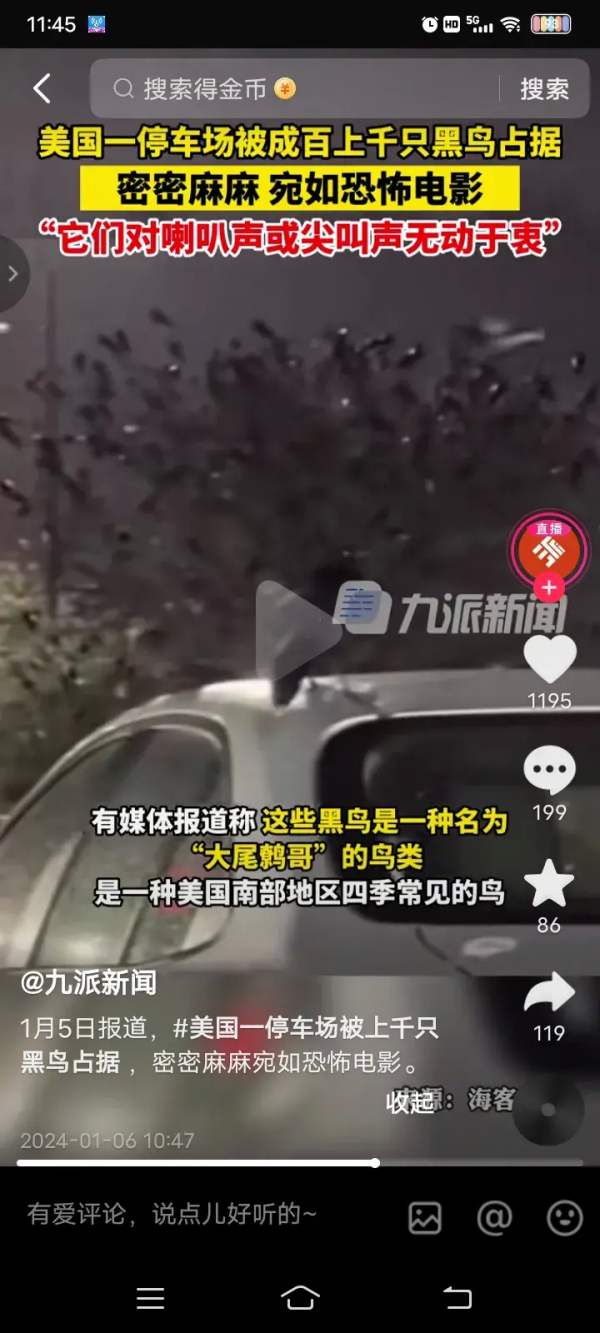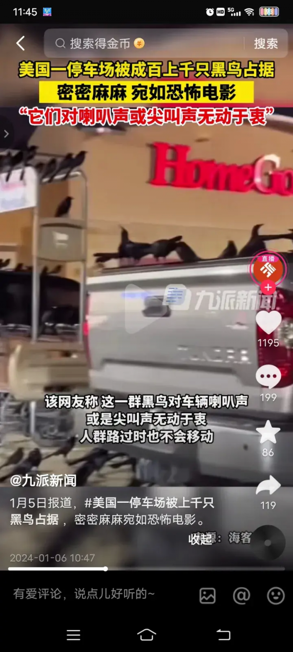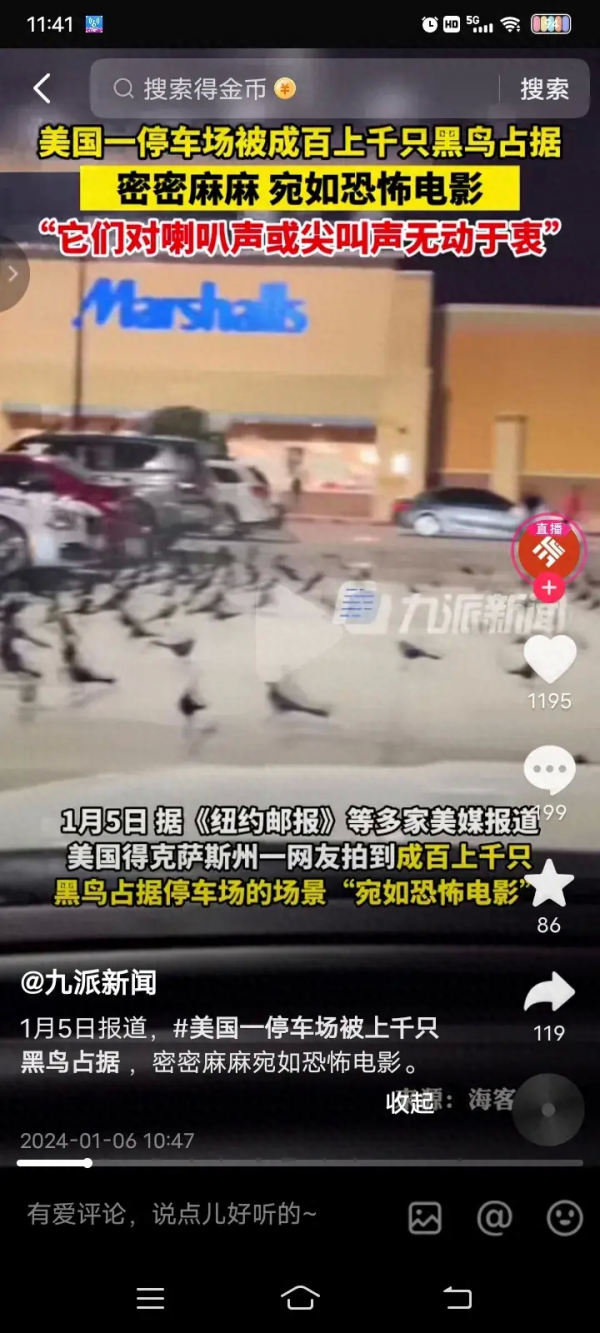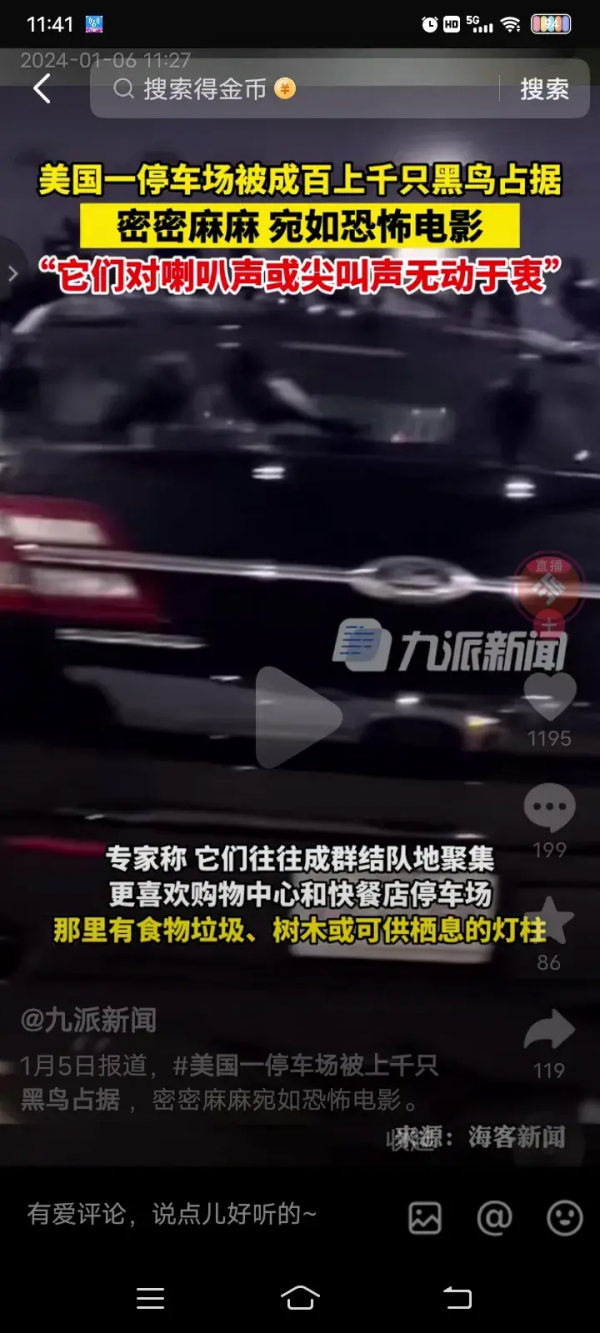 美国多地连续几天出现乌鸦大片聚集,乌鸦低空盘旋,大片爬满车顶