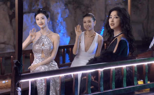 在某盛典的出场上,43岁的董洁被安排和35岁的景甜,39岁的朱珠一起坐船出场。当天景甜穿着一身银色亮片挂脖礼服,头发是显脸小的高盘发,加上景甜天生的冷白皮肤色,让她在三人之间是最亮眼的,不愧有"人间富贵花"的外号。