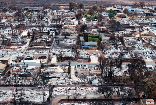 毛伊岛火灾后,曾经热闹的社区只剩下一片残垣断壁/《纽约邮报》