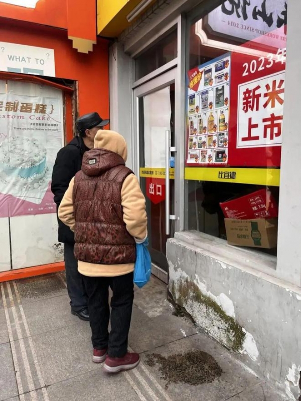 △比宜德汾西路店外,不少人路过,有人停下看店里