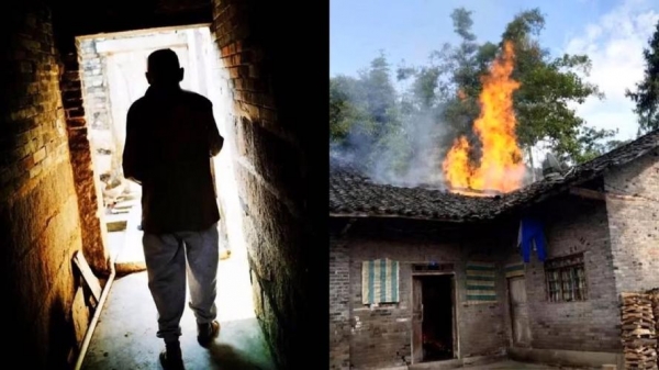 余干县人民法院经审理认为,被告人阿发与他人因感情纠纷发生矛盾,晚上在村民居住区放火,危害了公共安全,尚未造成严重后果,其行为构成放火罪。被告人到案后能如实供述自己所犯罪行,系坦白,依法可以从轻处罚;被告人犯罪时年满七十五周岁,依法可以从轻或减轻处罚。被告人家属积极赔偿被害人的损失,取得了被害人的谅解,依法可从轻处罚。