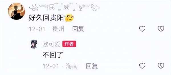另外,欧可爱还曾发表过一些类似于"不回贵阳了"的言论,这样的表态在当时或许只是一种情感宣泄,然而如今却变成了一种巧合的象征。