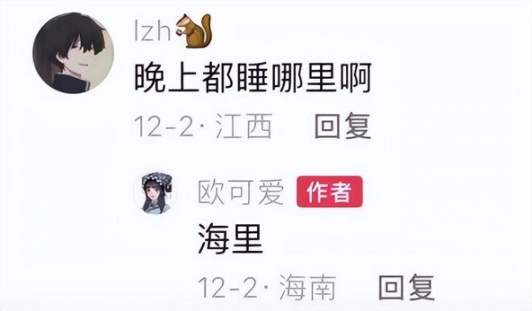 不知道是不是命中注定,还是说只是为了调侃。就在12月初,网红欧可爱在与粉丝互动的时候被问:晚上都睡哪里啊?