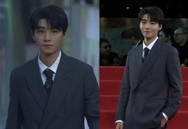 王俊凯以特约策展人的身份亮相电影展,他出场的时候天色变暗,所以在光线不足的情况下暴露了黑眼圈。也不知道他的深灰色西装外套是不是不合身,看起像没长大的孩子偷穿了爸爸的衣服。