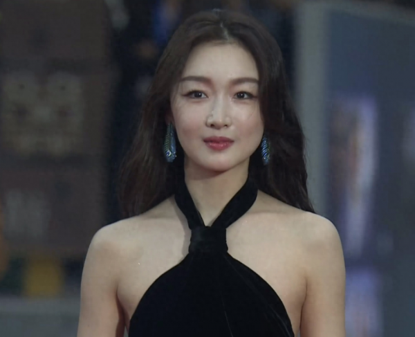周冬雨还是挺敢穿的,这条黑色裙子不仅能秀肩颈线条,同时也会把整个背部都展露出来,可谓"从肩露到腰"。