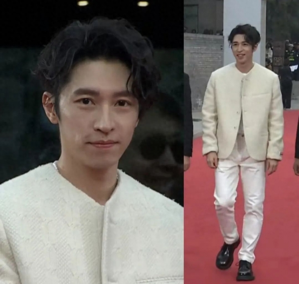 凭《孤注一掷》打开了内地知名度的孙阳,带着他的新作《人海同游》亮相红毯。单看这身米白色套装,穿不好就会土气满满,但他的长相和气质搭配这身衣服,倒有几分潮男的感觉。