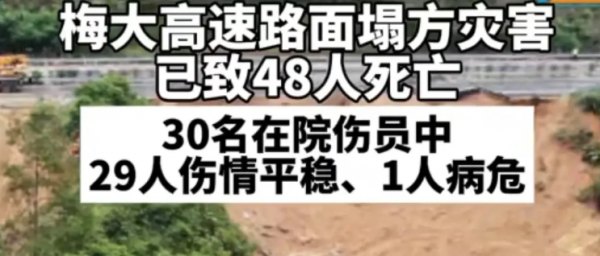 5月1日,在广东梅龙高速发生了一起重大事故,在大埔前往福建方向的高速公路发生坍塌,事故已经造成48死30伤,救援行动已经结束,48人死亡,这是多么惨痛的代价!