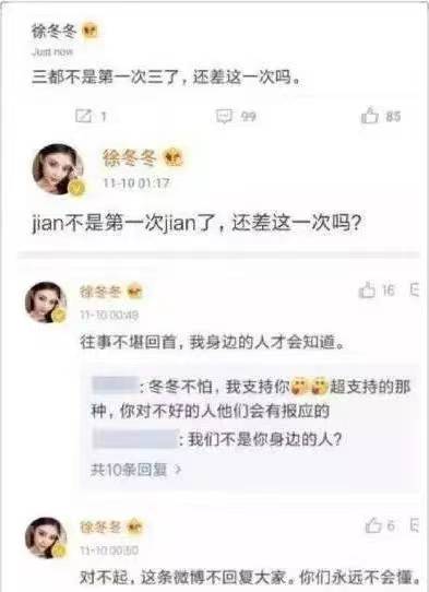 还被徐冬冬爆料称插足她与蒲巴甲的感情,导致徐冬冬与蒲巴甲分手↓