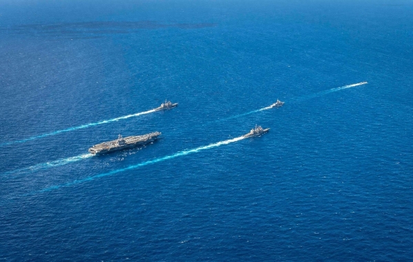 惠特尼山号两栖指挥舰是一个大型综合通信及信息处理系统,扮演着美国军队前线指挥部和美国本土通信指挥中继站的重要角色。与此同时,美国福特号航母战斗群、艾森豪威尔号航母战斗群和巴丹号两栖远征部队战斗群都已经集结在中东地区。这些舰队的出现意味着美军已经做好了迎战的准备。