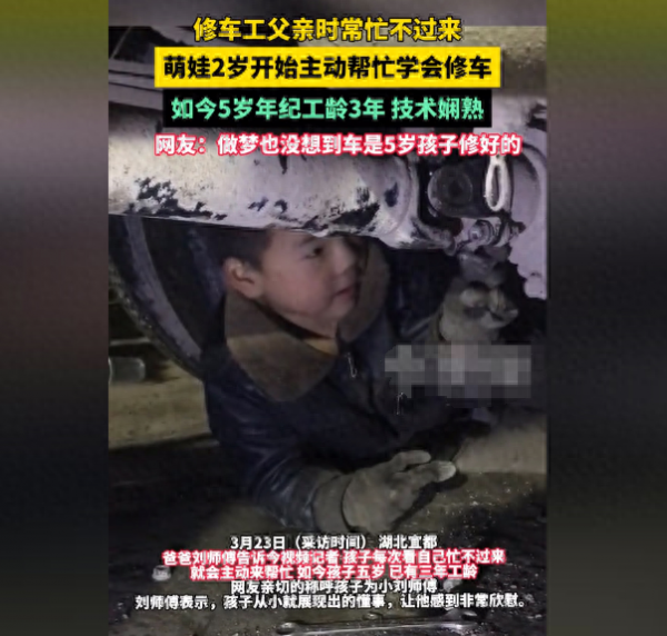 萌娃2岁开始在父亲汽修店帮忙,5岁的年纪已经有3年工龄
