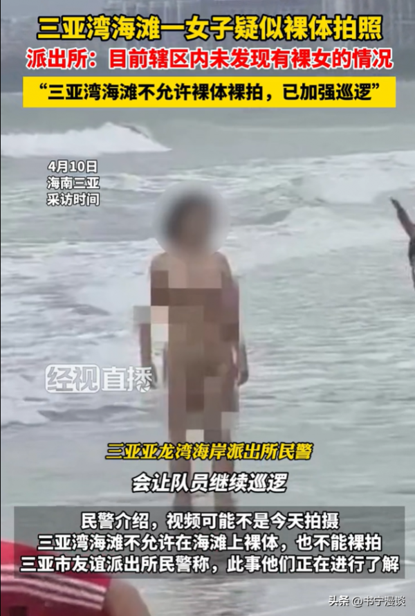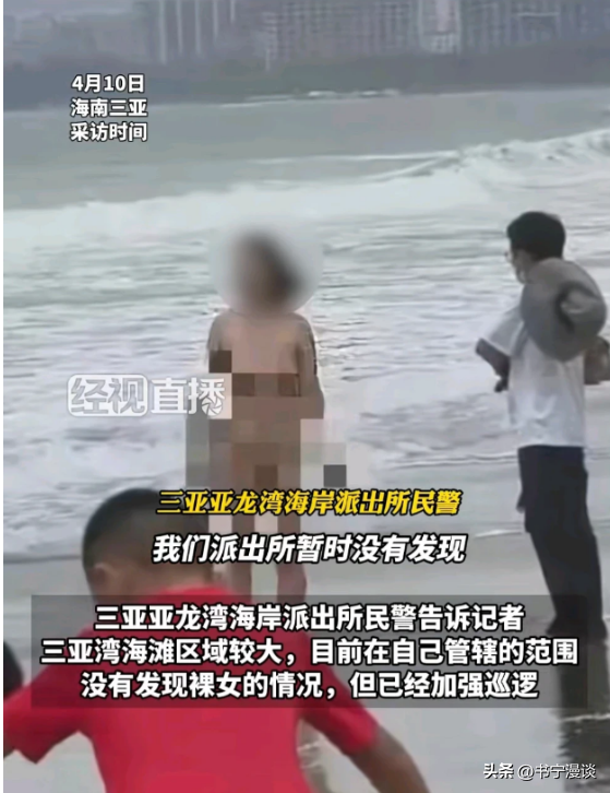4月10日,据小政视频报道称,海南三亚海边出现了一名裸体女人,她全身赤裸没穿任何衣物,旁边全都是人,还有不少是孩子,引发了网友们的关注。