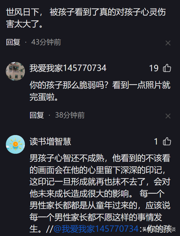 但也有网友认为女子的行为对孩子的心灵会有伤害,每一个家里有男孩的应该都不希望这种事情发生。