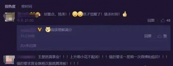 评论区里的花粉也在督促美女搞事业,花粉全员事业粉的人设不倒。