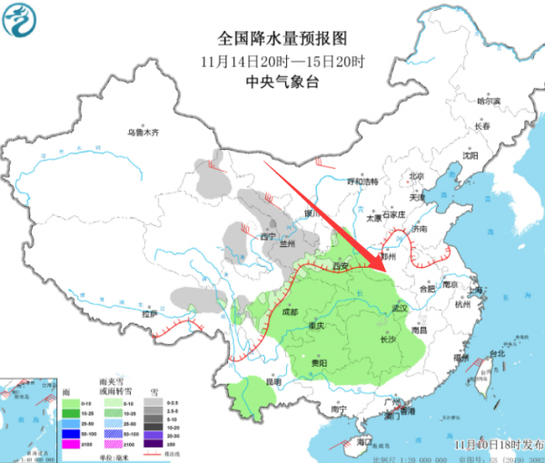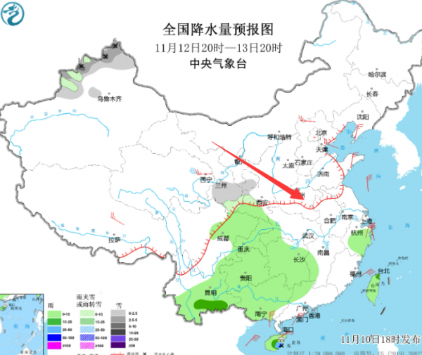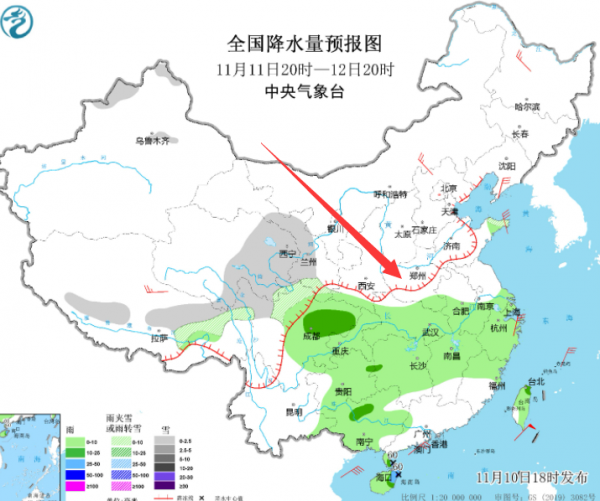 明天,11日南部地区的南阳,信阳,驻马店、周口,许昌,漯河、三门峡北部和洛阳北部等地则会有小雨,其中洛阳北部伴有雨夹雪。