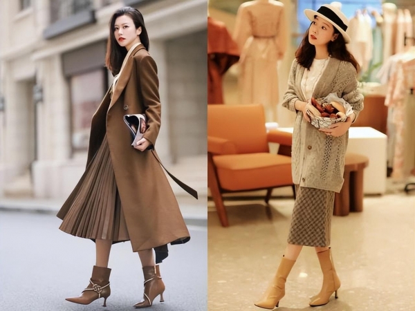 还可以选择一件大地色的内搭,搭配一件同色系的卡其色马甲,下身选择一条带有开叉设计的半身裙,再配上一双时髦的黑色皮靴,整套造型瞬间点亮起来,简直让人眼前一亮!