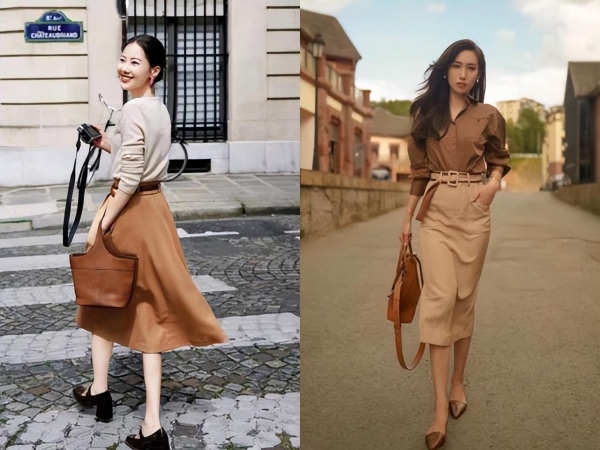 衬衫搭配大地色半身裙,简直就是法式通勤风的热爱者们心心念念的完美组合,如果你也喜欢这个风格,绝对不能错过这套穿搭!
