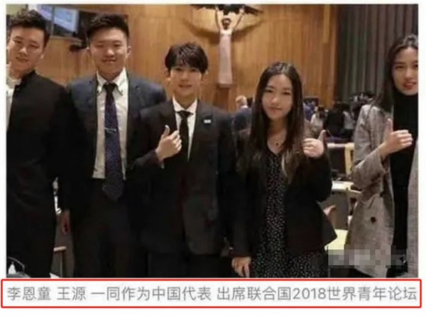 其实王源和李恩童早就认识,两人还曾经作为中国代表一起参加过联合国举办的世界青年论坛,还一起合影留念了。