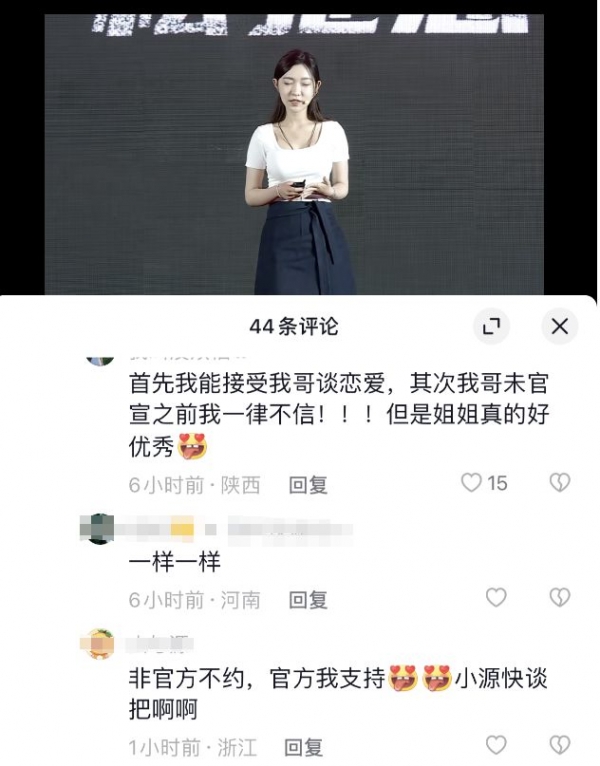 王源和李恩童恋情也火速上了热搜,李恩童之前参加演讲的视频也被扒出来了,评论区都是粉丝在破防。